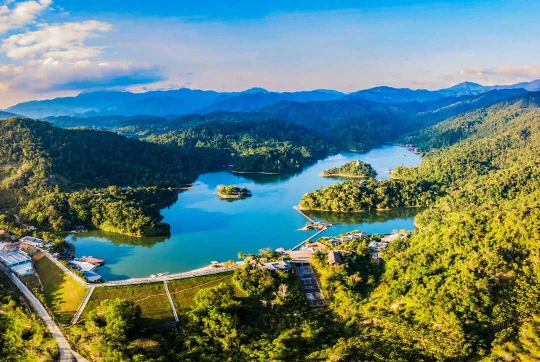 驱车来到神玉岛,在北纬18°的热带雨林,隐藏着这样一方湖光山色,踏入这方静谧之地,仿佛让人置身仙境。远山与近湖紧密相连,湖水微蓝,远山深青,缭绕的云雾让这里宛若仙境。