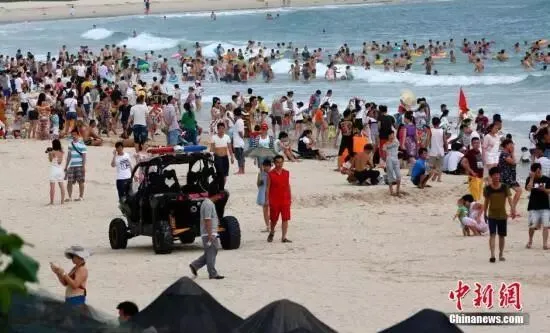 资料图:2016年6月9日,海南三亚,大批当地市民和游客在大东海海滩扎堆“洗龙水”过端午节。中新社记者 尹海明 摄