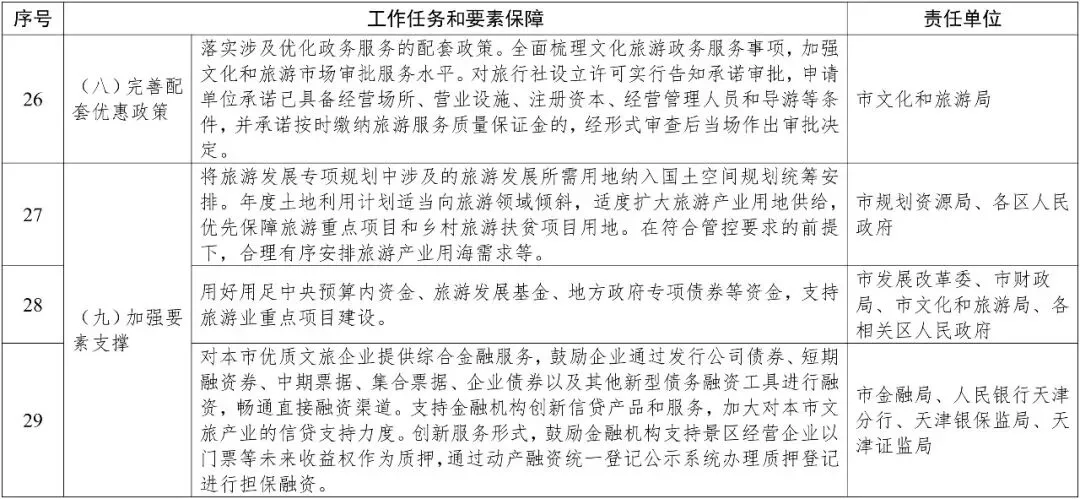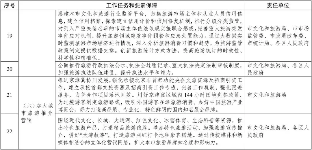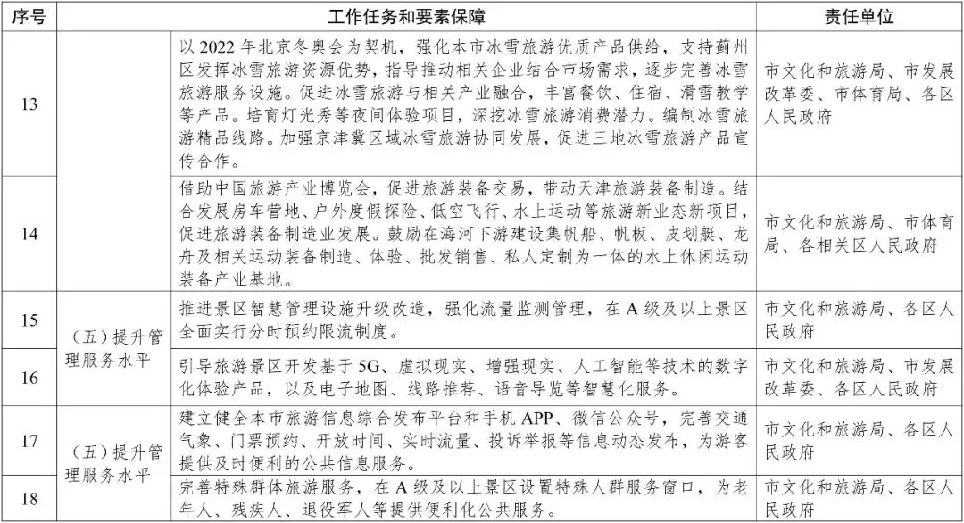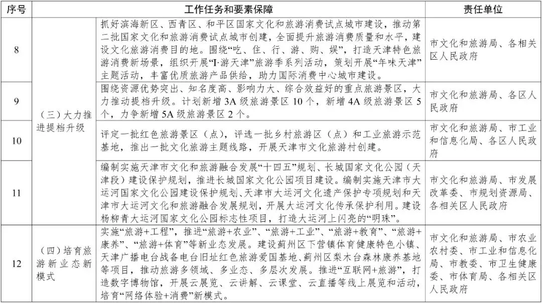 推动旅游业与相关产业融合发展,围绕旅游基础设施建设和升级改造,组织实施一批高水平重大项目,努力推动杨柳青古镇、五大道文化旅游区创建国家5A级景区,在全市范围内计划新增和改扩建项目40个,总投资492亿元。