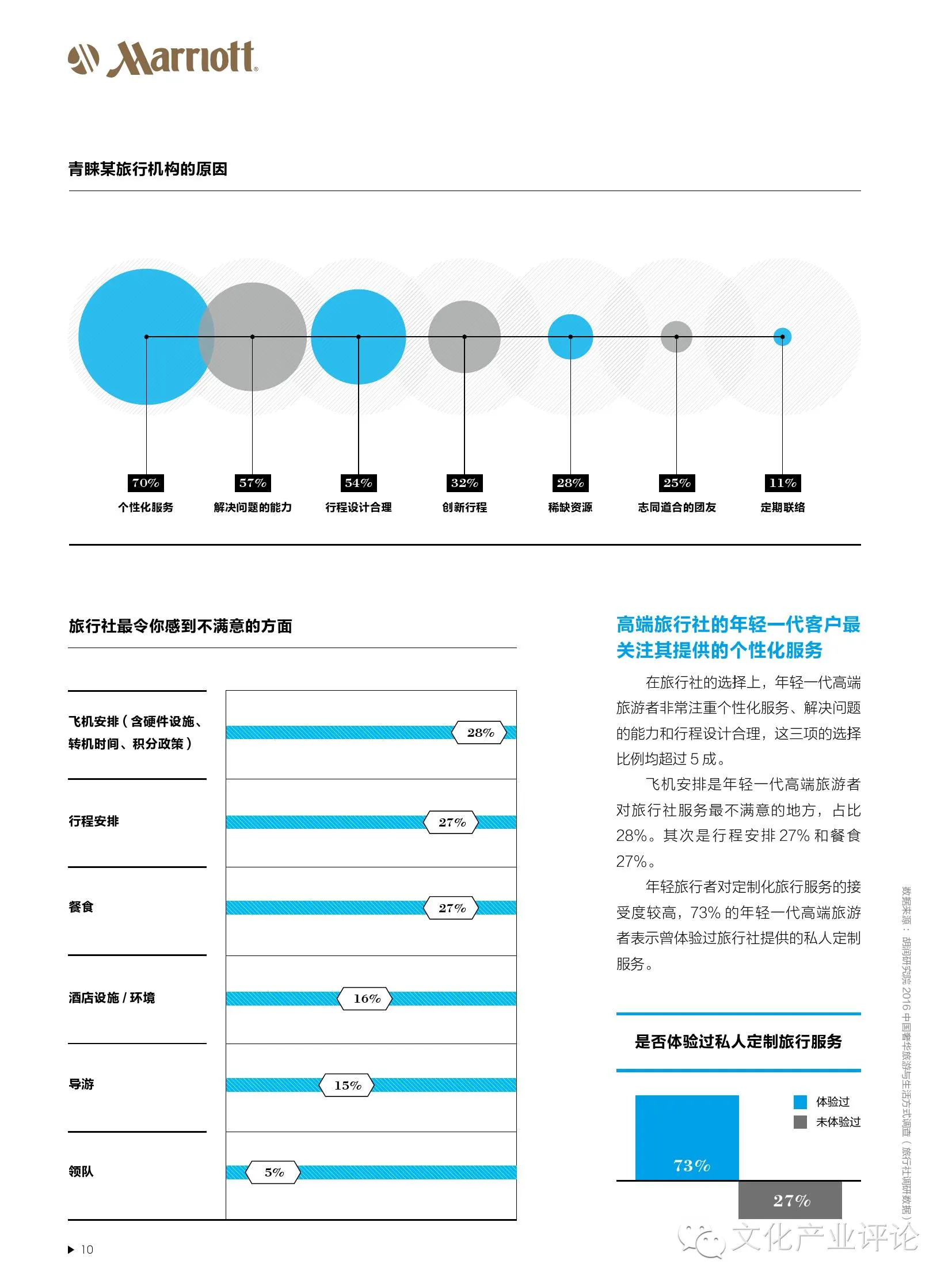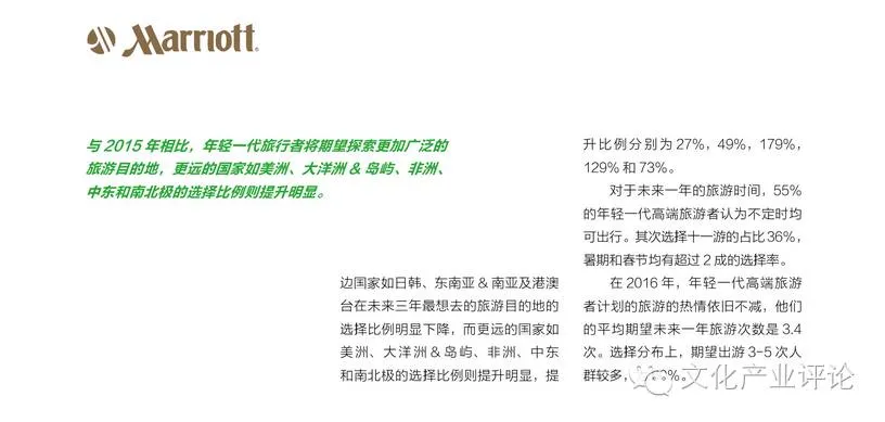 文化产业评论:当人们有钱有闲的时候生活方式就进入“休闲”层面,旅游方式也告别简单的跟团和自驾,取而代之的是一种更高端的消费形式——奢华旅游。近期,胡润研究院与国际酒店管理公司万豪国际集团携手发布《2016中国奢华旅游白皮书》,向我们展示了中国80后年轻一代高端旅游者的旅游方式、旅游消费情况和未来旅游趋势。这种旅游形式不是简单的土豪式炫耀,而是生活品质全方位的提升,顺应高端定制服务的需求顺势而生。