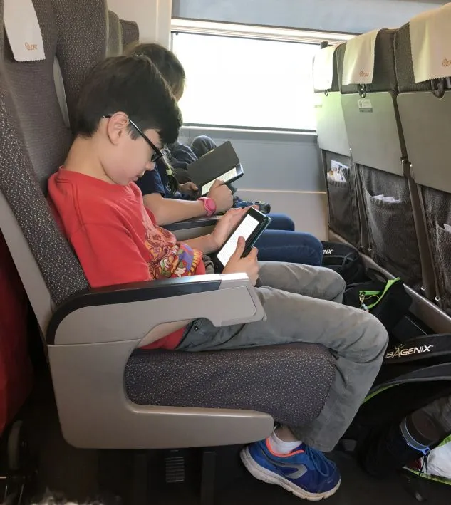 在南京去往北京高铁上邻座的是一对跨国家庭。一对夫妻带着四个孩子,每个孩子都购买了座位,近四个小时的路程,孩子们都很安静,各自拿着Kindle看着自己喜欢的书。最小的孩子吵闹了几分钟立刻被妈妈训的服服帖帖,这么一看原来带着孩子出远门也没那么恐怖嘛。