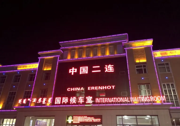 第一天夜里我们就到中蒙边境城市:二连浩特。由于中蒙的铁路轨道规格不同,在这里们要换火车轮,耗时3个小时左右,旅客是可以下车活动,当然也可以选择在车上休息。才上火车我们就像打了鸡血一样,哪还能在车厢里呆着,赶快去看看蒙古的无限风景啊。然而到二连已经八点多了,外面乌黑黑的一片,还因为要搭车不敢走太远。在火车站附近兜兜转转一个小时后就无所事事了。