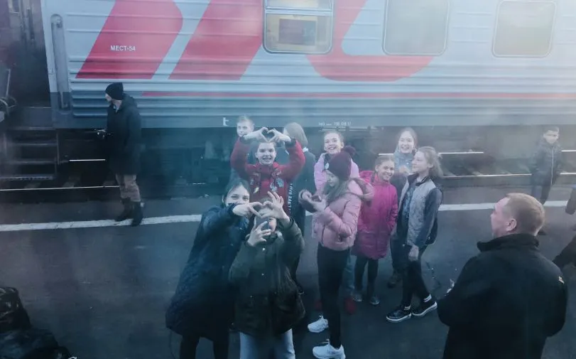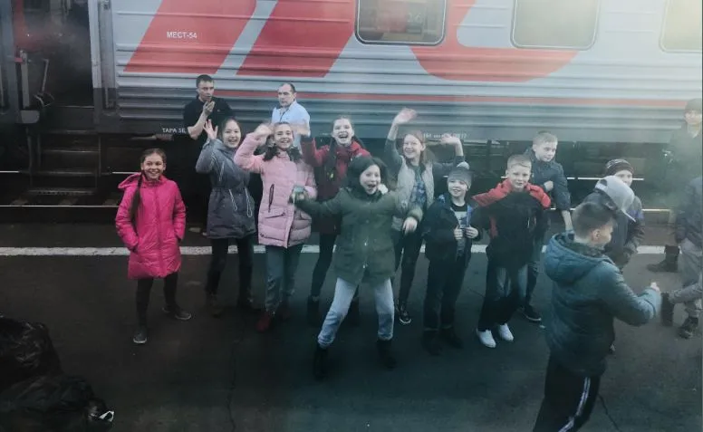 在新西伯利亚停靠时,遇到一群去公演的孩子,我们隔着车窗与他们挥手,他们热情的向我们展示他们的舞蹈,一个个天真烂漫,活力四射。就这样隔着玻璃互动着,彼此都笑的前仰后合。