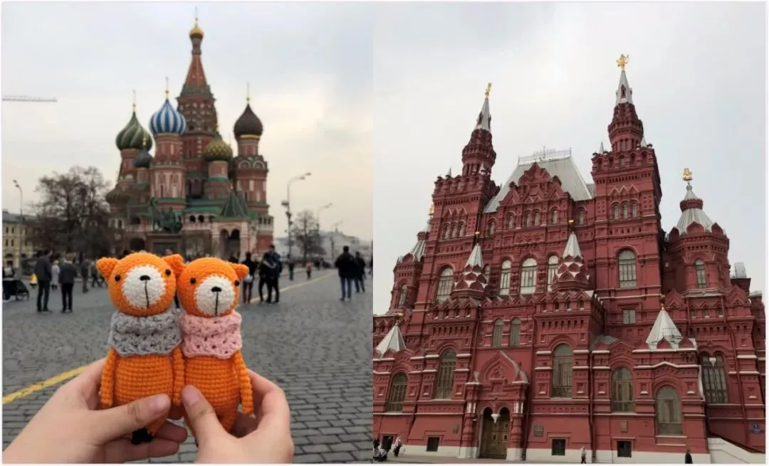 红场是俄罗斯必去的景点,各国的旅人都有。在浏览景点的同时,带着我们在火车上钩的玩偶,在这标志性的景点拍上一张到此一游照,也是很有纪念意义了。