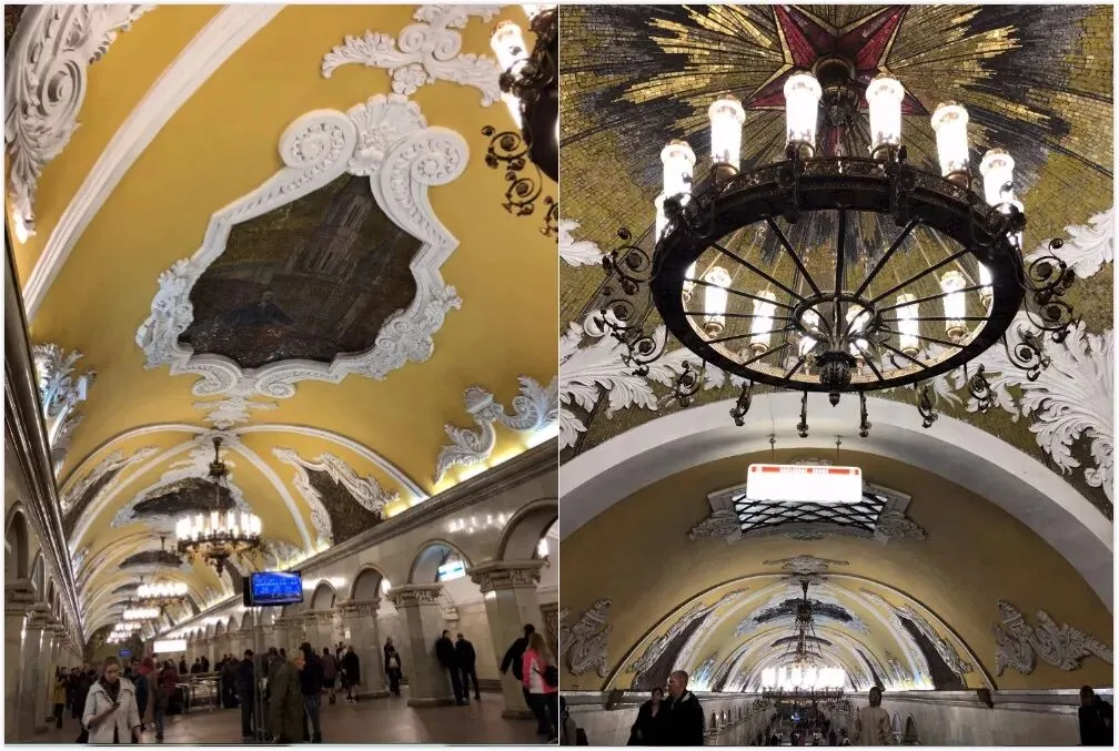 地铁站也是俄罗斯的著名景点之一。早些年这些地下铁道是作为防空洞使用的,1935年开始动工地铁。这些地铁站都是由著名设计师设计,各自都有其名族特色,还有名人,历史事迹作为主题,有浮雕,壁画,雕刻等多种建筑艺术方式,也被称作“地下的艺术殿堂”。