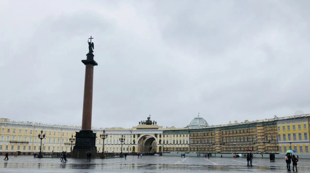 去冬宫的那天风大雨大,由于住的地方距离冬宫只有两公里我们就决定步行去,出来我们就后悔了,风雨从四面八方来,空气里刺骨凉意。但是很奇怪的是,路上鲜少有打伞的人,起初我们以为他们穿的是防水防风材质的羽绒服,走近看也就是普通的大袄。