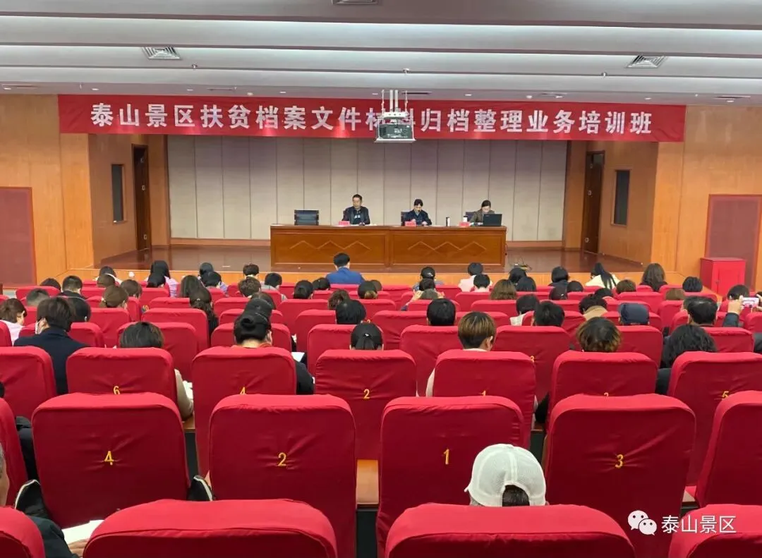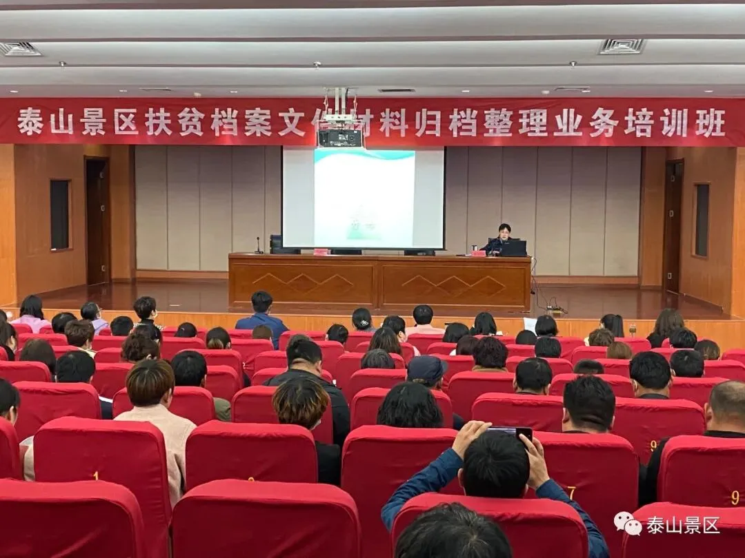 近日,泰山景区扶贫档案文件材料归档整理业务培训班在景区数控中心一楼报告厅举办。景区、乡镇(街道)扶贫开发工作领导小组成员单位、扶贫办及有扶贫工作任务的村工作人员100余人参加培训。