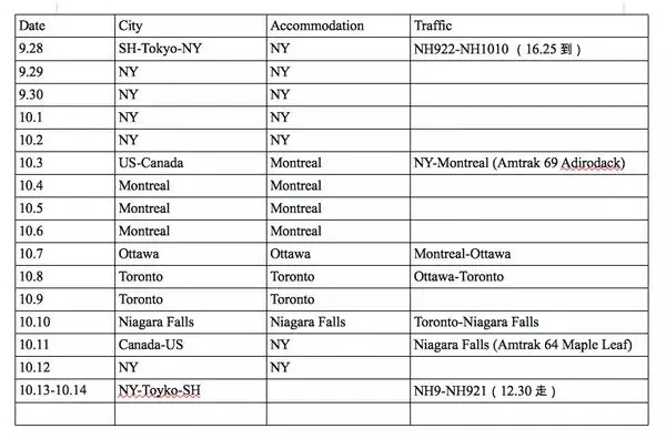 举个例子,之前十一在美东和加拿大,「多国+公共交通+城市游」的行程。