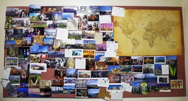 (以前做的一面照片墙,我喜欢收集沿途的明信片,每去一个城市都会买上一打,贴在墙上的只是一小小小小部分)