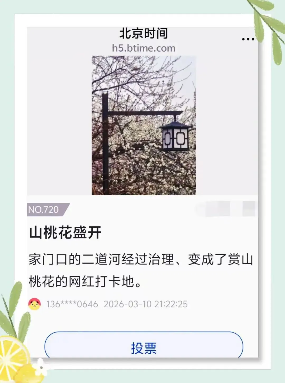 春回大地,天气渐暖,京城“水映桃花”的盛景如期而至。“‘北京范儿’大众摄影征集活动——北京美人人拍”进入三月以来,已陆续收到近千件参赛作品,其中春景、春花主题的作品就有数百幅。