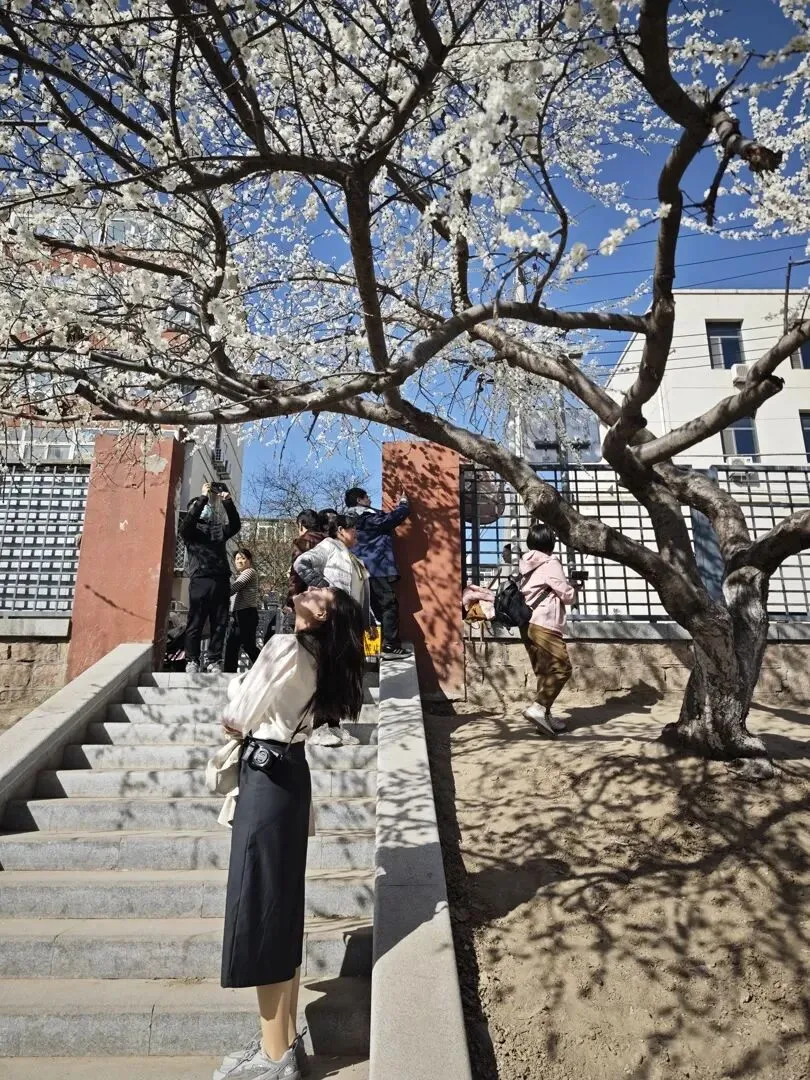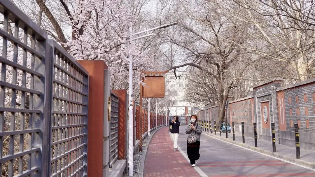 亮点:桃花枝丫探出栏杆,路边就能拍出“花拂肩头”的清新街拍,适合快速打卡。