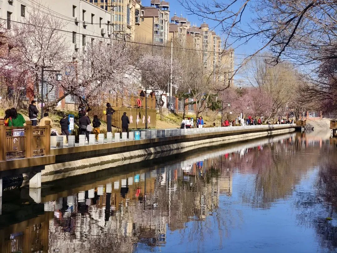目前,二道沟两岸花树缀满粉白相间的花朵,与碧水相互映衬,在微风中摇曳,景色宜人。 新建成的亲水平台、滨水栈道上,游客们三三两两,有的驻足欣赏,有的用手机或相机拍下明媚的春光,欢笑声持续不断。两岸的桃花,也即将迎来盛花期。