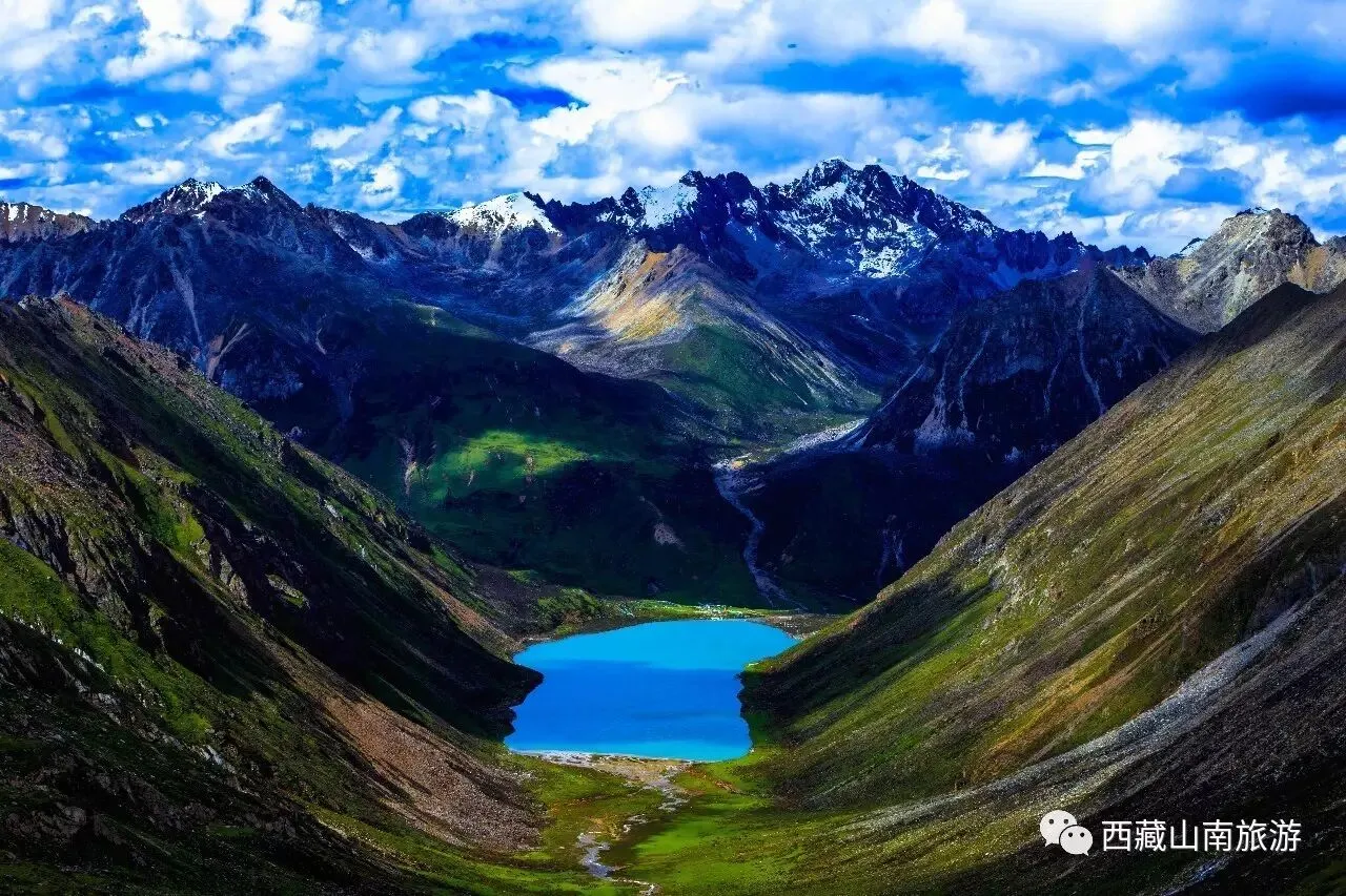 思金拉措,藏语意为:具有威力的神湖。当地群众称为“财主百龙之王”居住的神湖。距川藏公路(318国道)约5公里,距桑日县约93公里。地形犹如聚宝盘,四周群峰簇拥,山脉相连,气势峥嵘、风景如画。山顶冰雪岭玉,山腰植被繁茂,山脚的草地上百花争艳、牛羊满山、药材丰富。