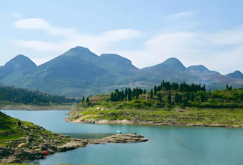 第八站:夜郎洞/夜郎湖——水上迷宫的神秘夜郎湖是高原“三峡”,湖湾半岛星罗棋布。这里不仅水抱群山,还有穿洞古人类遗址。最推荐的是坐船游览,那种“山映碧水水抱群”的画面,像极了水墨画。如果您喜欢安静,这里比黄果树人少,更能独享山水。