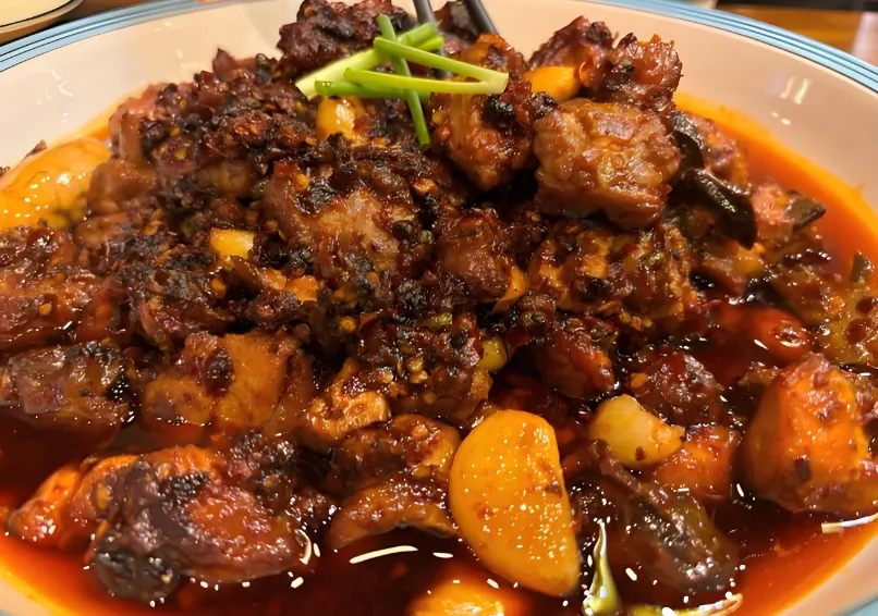 第二美食:旧州鸡辣子六百年的历史名菜!相传是明军随军食品,用糍粑辣椒和鸡肉炒制,香辣醇厚。不管是拌饭还是下面条,一勺下去,灵魂升华。现在的旧州古镇里,很多老宅子里都能吃到最正宗的版本。