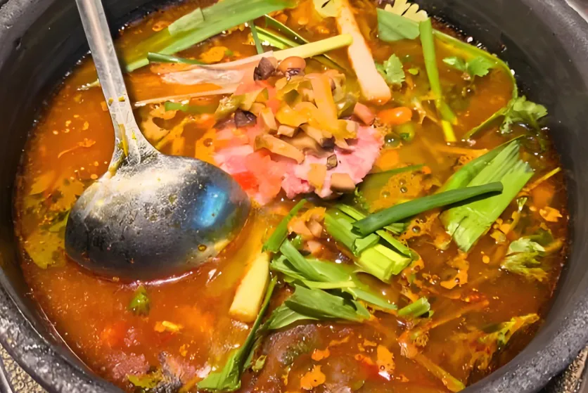 第三美食:夺夺粉火锅安顺火锅界的扛把子!汤底用酸汤和肉沫调制,粘稠浓郁,和米豆腐、蔬菜一起煮,酸辣开胃。这种“小锅煮”的形式特别适合两三好友,人均几十块就能吃到撑,记得多点一份软哨,吸满汤汁绝了。