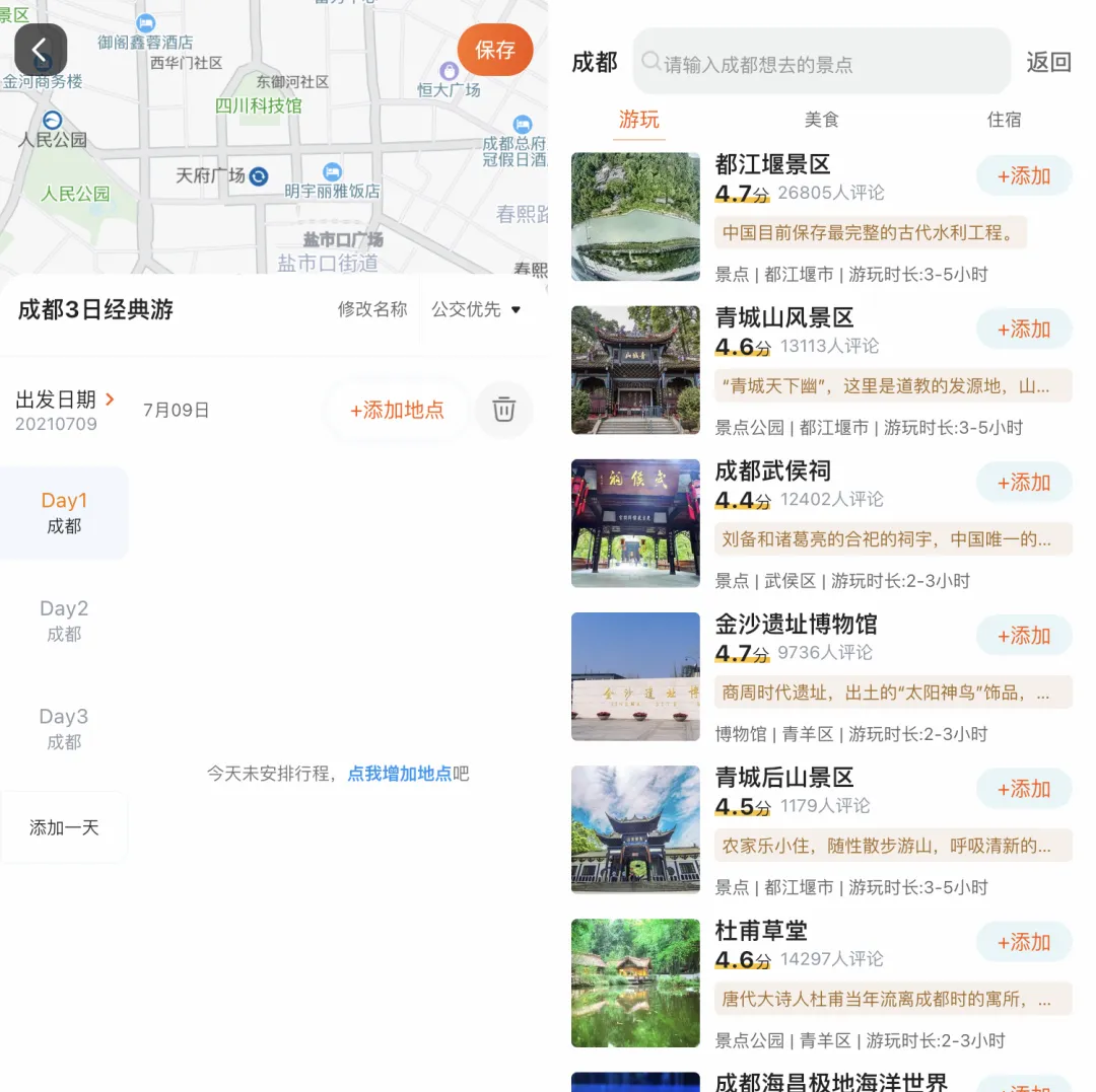 横观其他三款应用,它们行程规划功能大致也是这个操作逻辑,关于这一点,小黑就不多说了。但如果深入体验,就会发现这些应用都有各自的一些缺点。