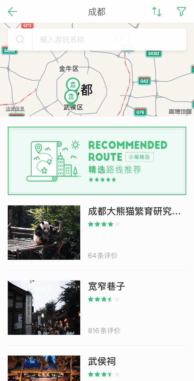 对景点的地区归纳,对小黑来说也有些奇怪。还是以成都为例,一般情况下,不会有人为了去都江堰特地去都江堰市走一趟,但很多人都会在去成都时将都江堰规划到行程中。