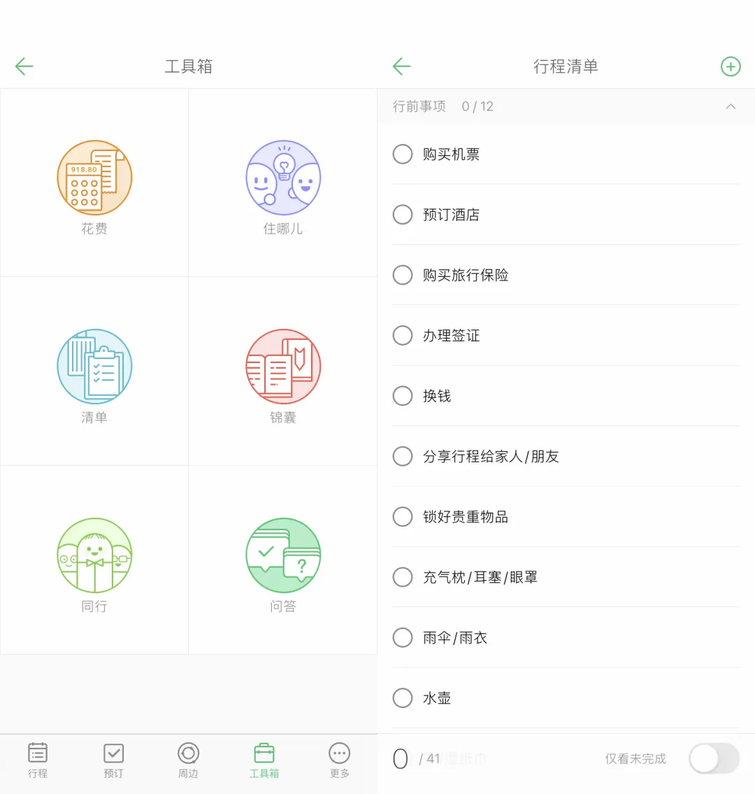 除了行程规划功能之外,一些实用小工具也能俘获游客们的心,例如消费情况、行李清单等,都能让用户对行程全面掌握。