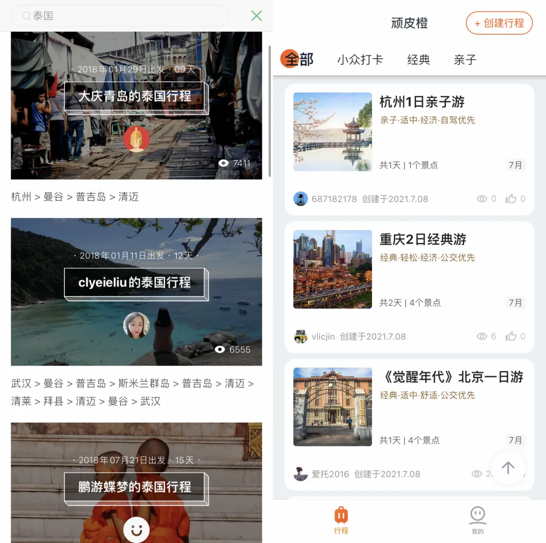 ▲ 顽皮橙旅行提供了两种创建行程方案