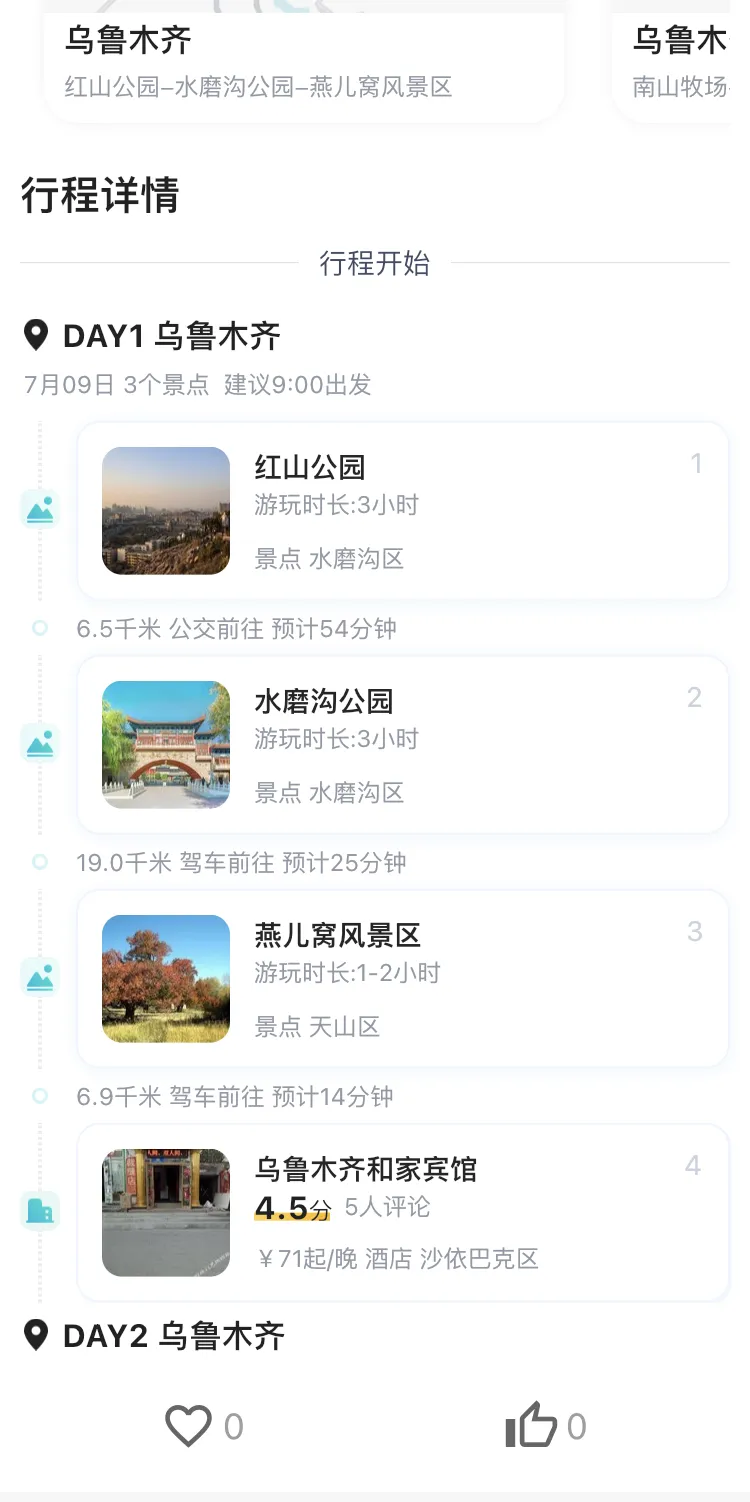 由于行程助手App的前身是主打国外穷游的穷游行程助手,因此其国内数据暂时不够完善,在新疆仅有乌鲁木齐一个城市可供选择,而得到的结果也不能令人满意。