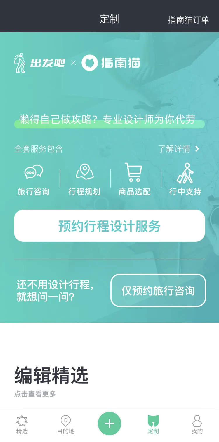 出发吧App则拥有私人订制行程服务,但无奈交互逻辑令人摸不着头脑。