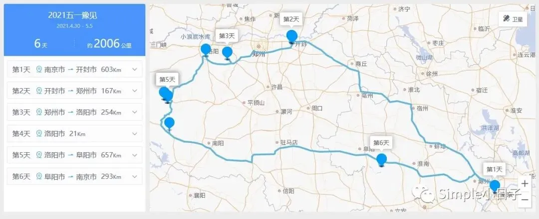 最后来张图——今年五一我们去河南的路线规划