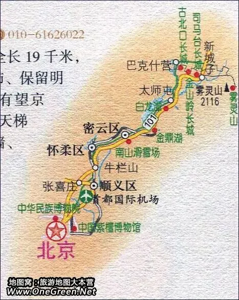 北京至雾灵山旅游路线图