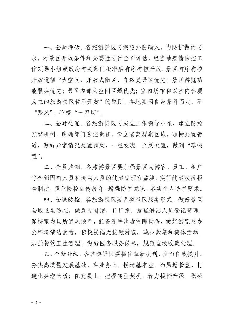 以下为《关于疫情防控期间景区要严格管控 有序开发 因地制宜 科学复工的建议》全文: