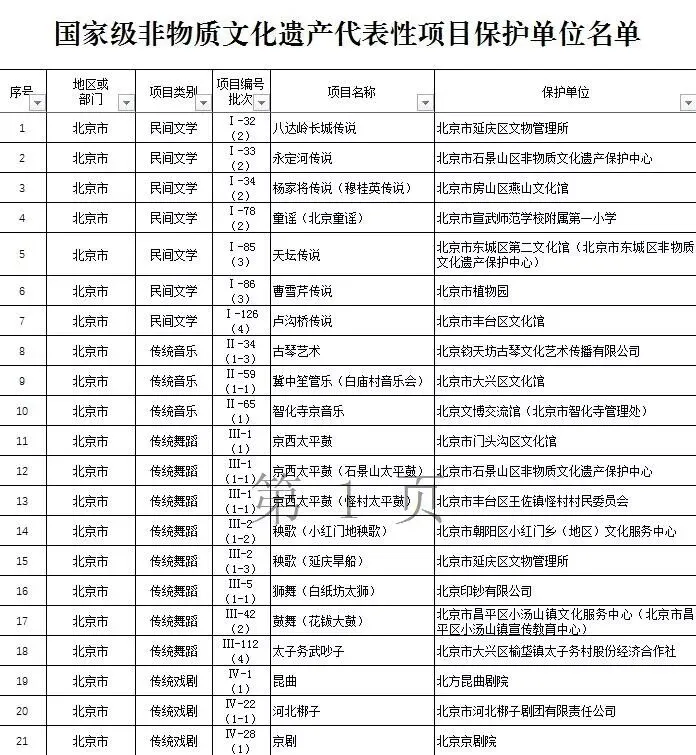 现将调整后的国家级非物质文化遗产代表性项目保护单位名单予以公布(见附件),请各地落实管理责任,督促保护单位提高履责意识,做好保护工作,接受社会监督。