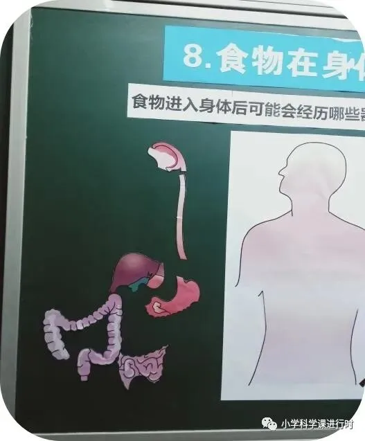 为了进一步巩固修正前概念的阶段性成果,我创新性的制作了“人体消化系统图磁力板贴”。以此巩固纠正学生前概念的不准确认知(如图6)。
