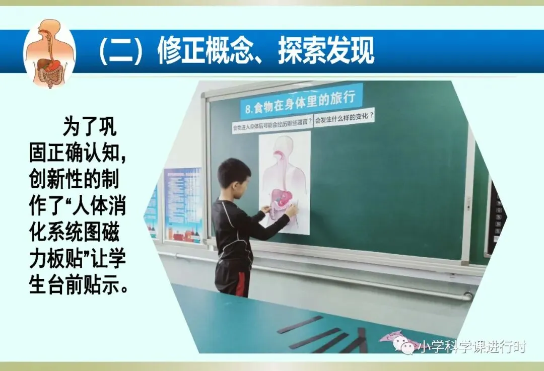 1、制作“人体消化系统图磁力板贴”,进一步巩固、纠正学生前概念的认知。