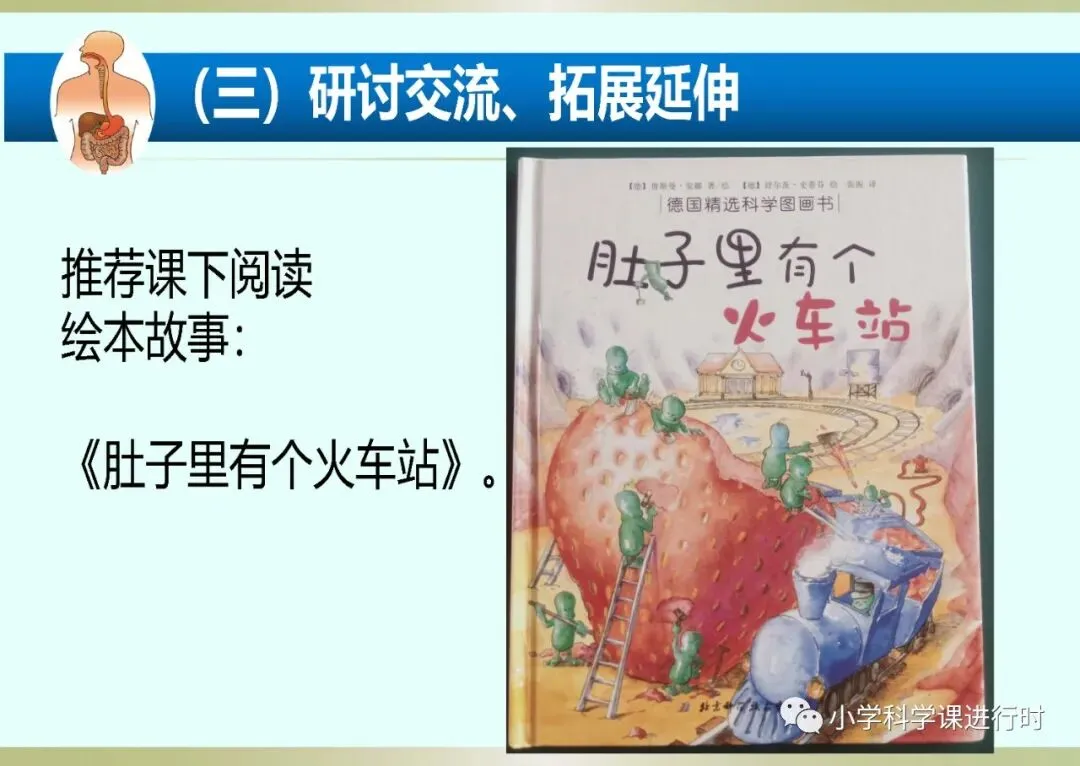 拓展延伸:推荐课下阅读绘本《肚子里有个火车站》,进一步了解有关消化器官的知识!