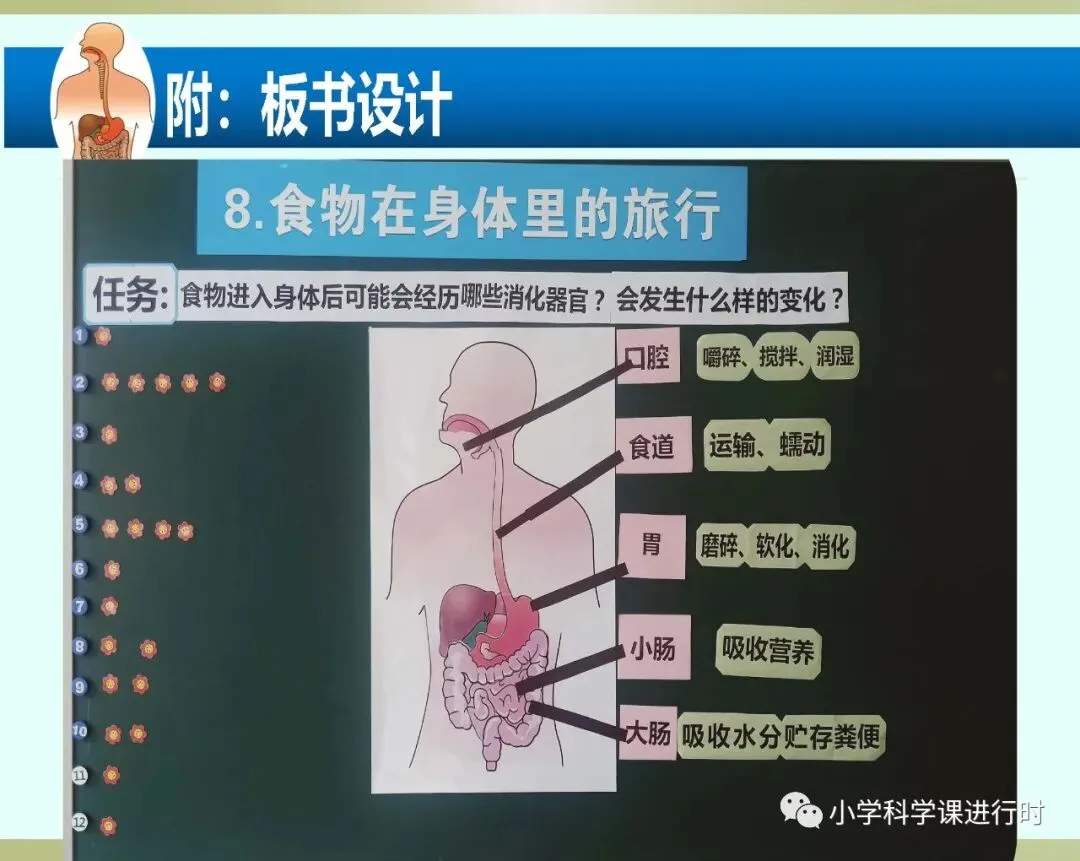 胃里被磨碎、软化的食物到哪里了?小肠和大肠各有什么作用?教材:仅限于观察科学家绘制的“人体消化系统图”时略有介绍,信息量小,不够直观。
