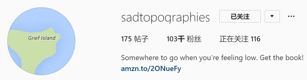 2015年,一个名叫@sadtopographies(悲伤地形学)的instagram账号备受网友欢迎,里面记录了来自世界各地令人沮丧的地名,无望岛、悲伤湖、心碎街……只需一眼,心里的那份难过就突然被硬生生拽了出来。