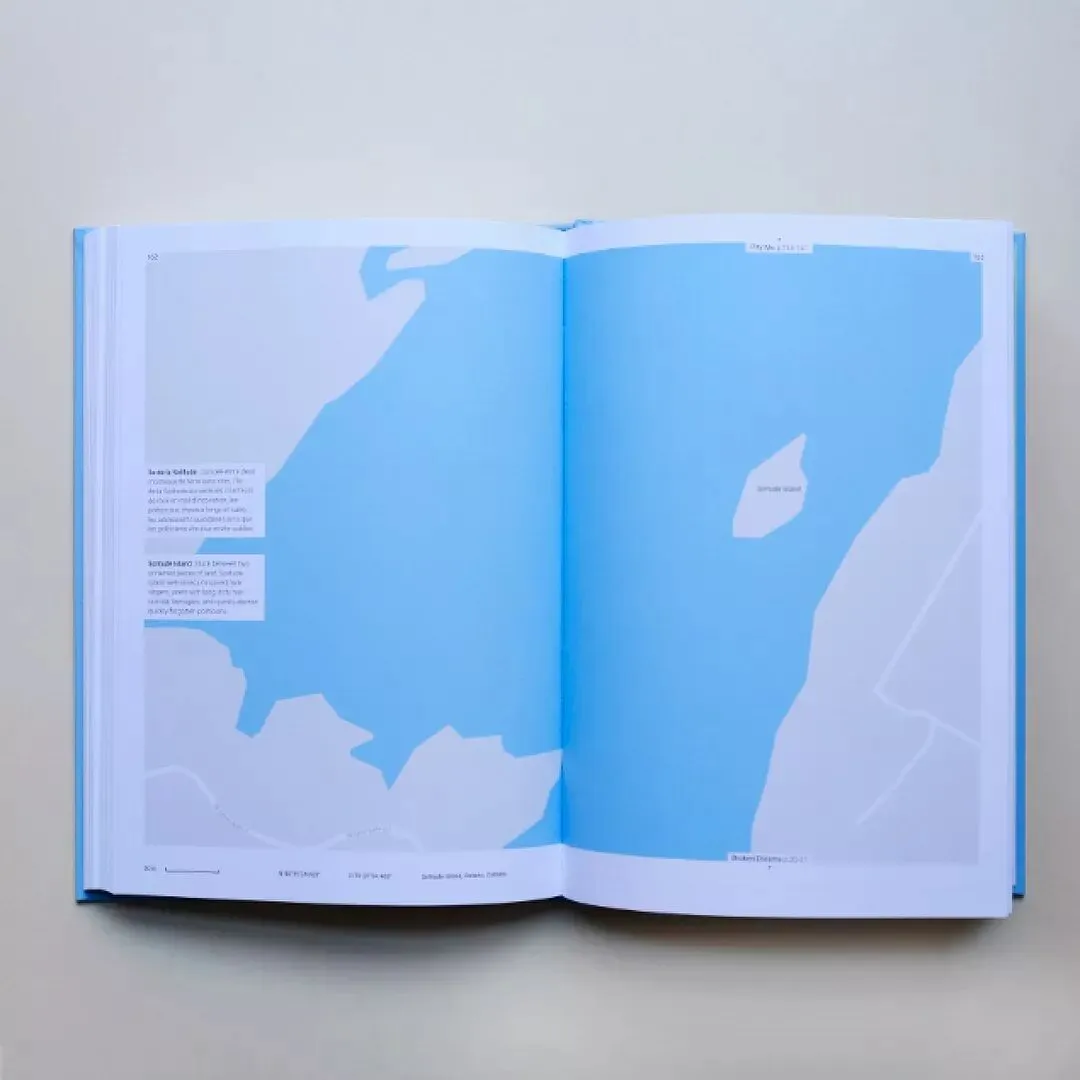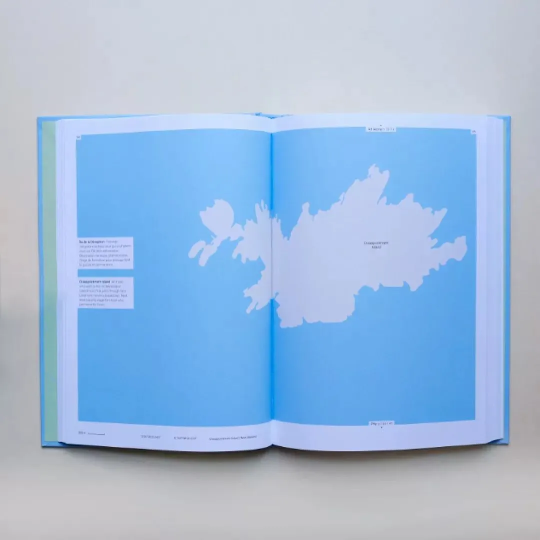 而在2018年,Jean Boite Editions同样为此出版了一本书——《Triste Tropique》,收录了其中89个地名截图,清楚地标注了经纬坐标以及具体名称,甚至还为每一个地名配备了悲伤指数。