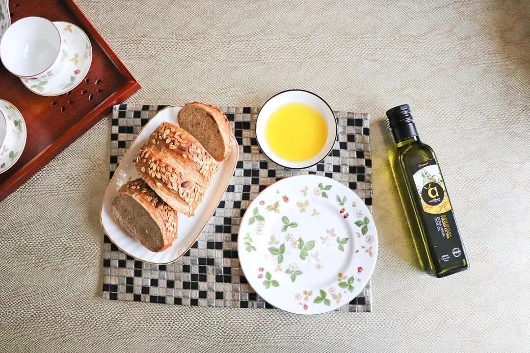 少许橄榄油+意大利黑醋,蘸上香酥的烤面包,第一口下去~Mmmmmmmh~~~~