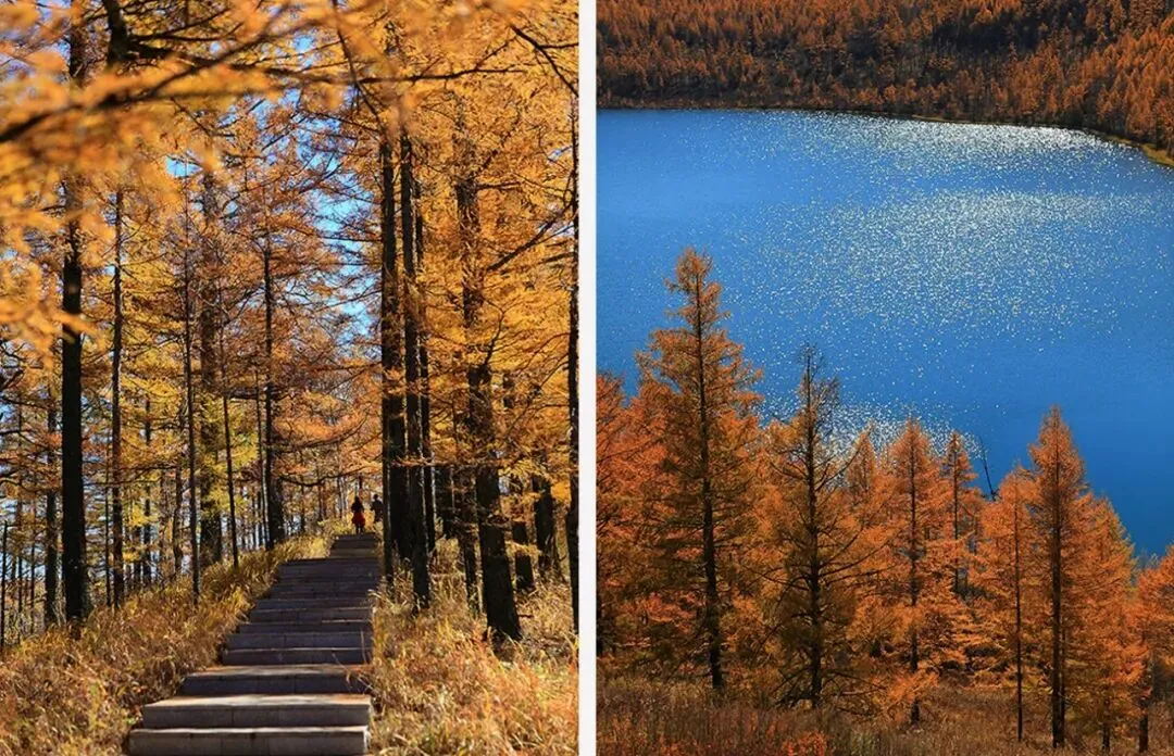 秋天的阿尔山特别美,原本翠绿的森林会变成橙褐色,与映着天光的湛蓝湖水形成绝美的画面;此时的白桦林落叶退去,白色的树皮更显出纯粹的美感;而额尔古纳湿地则是可以让人打开心扉的地方,弯曲的河水在草原之中犹如天上而来。