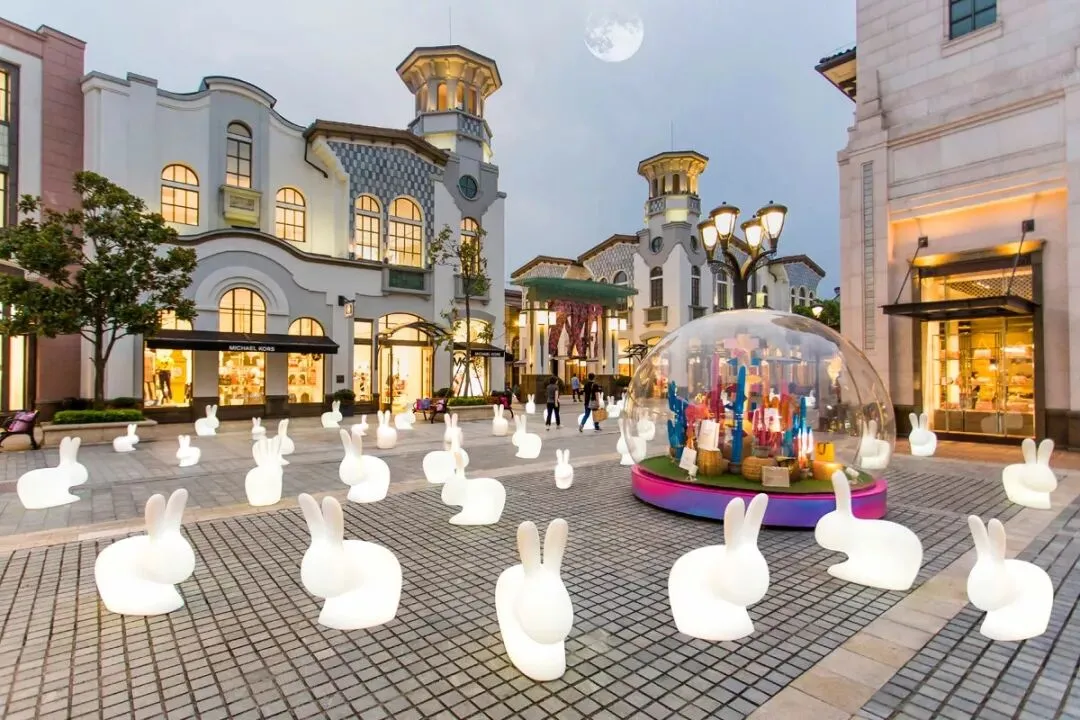 当夜幕降临 园区内的各种灯光和奇宝兔相融一体 整个园区仿佛瞬间成了一个童话仙境 引来无数游园者前来拍照打卡 除了“千兔伴月”的梦幻现场 与上海奕欧来奥特莱斯一样 苏州奕欧来也同样入驻了众多时尚大牌 超过120家的国际一线轻奢品牌
