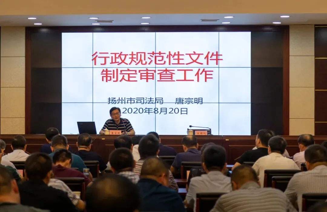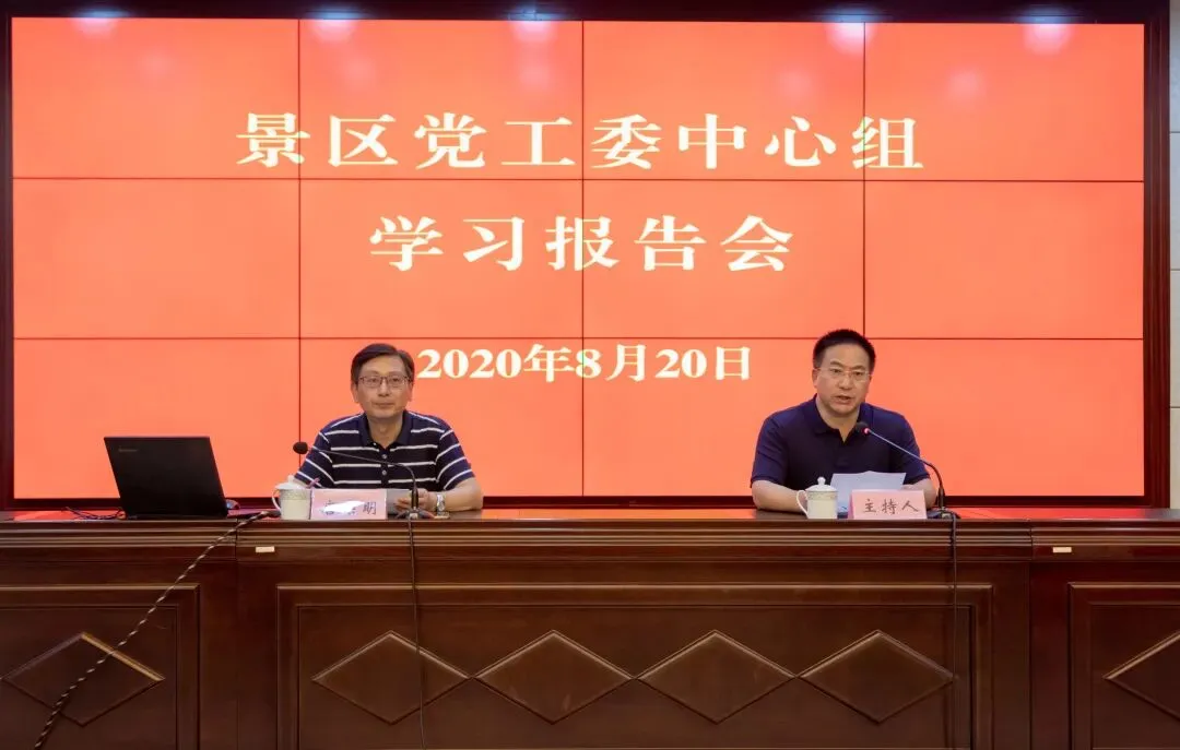 8月20日下午,景区党工委中心组举办集中学习报告会,邀请扬州市司法局备案审查处处长唐宗明作《行政规范性文件制定审查工作》专题讲座。党工委副书记刘马根主持会议。