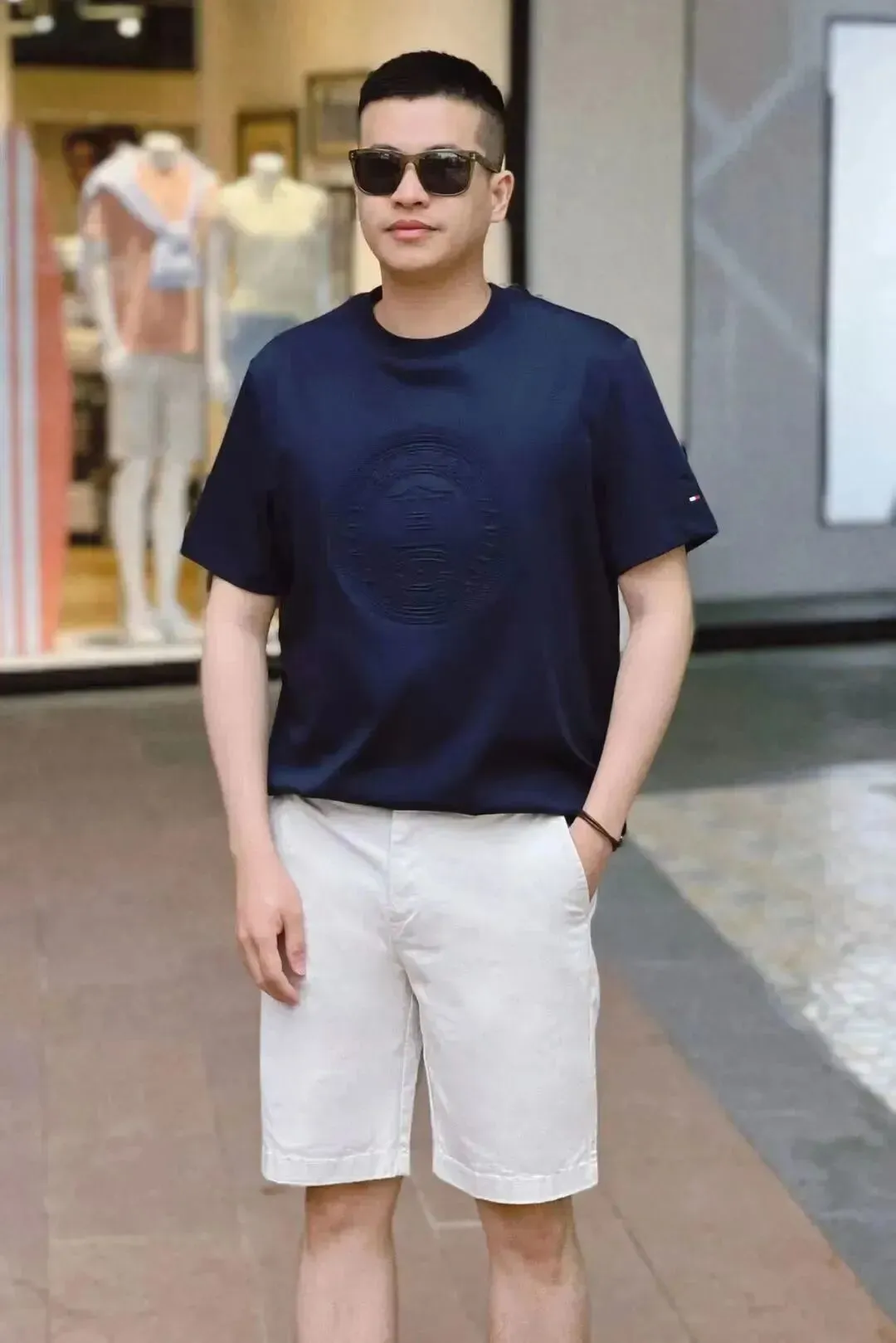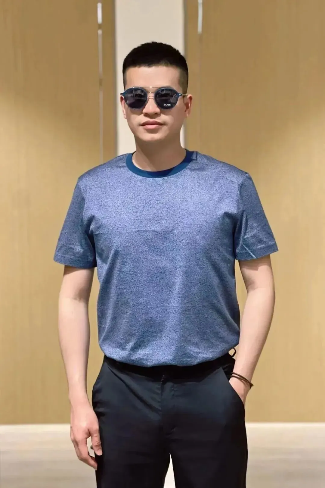 [右]深蓝色圆领男士T恤