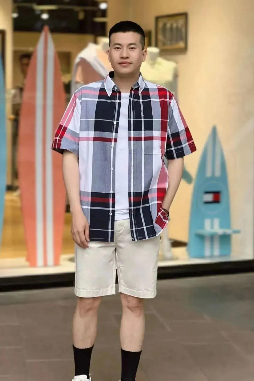 [右]男款格子短袖衬衫