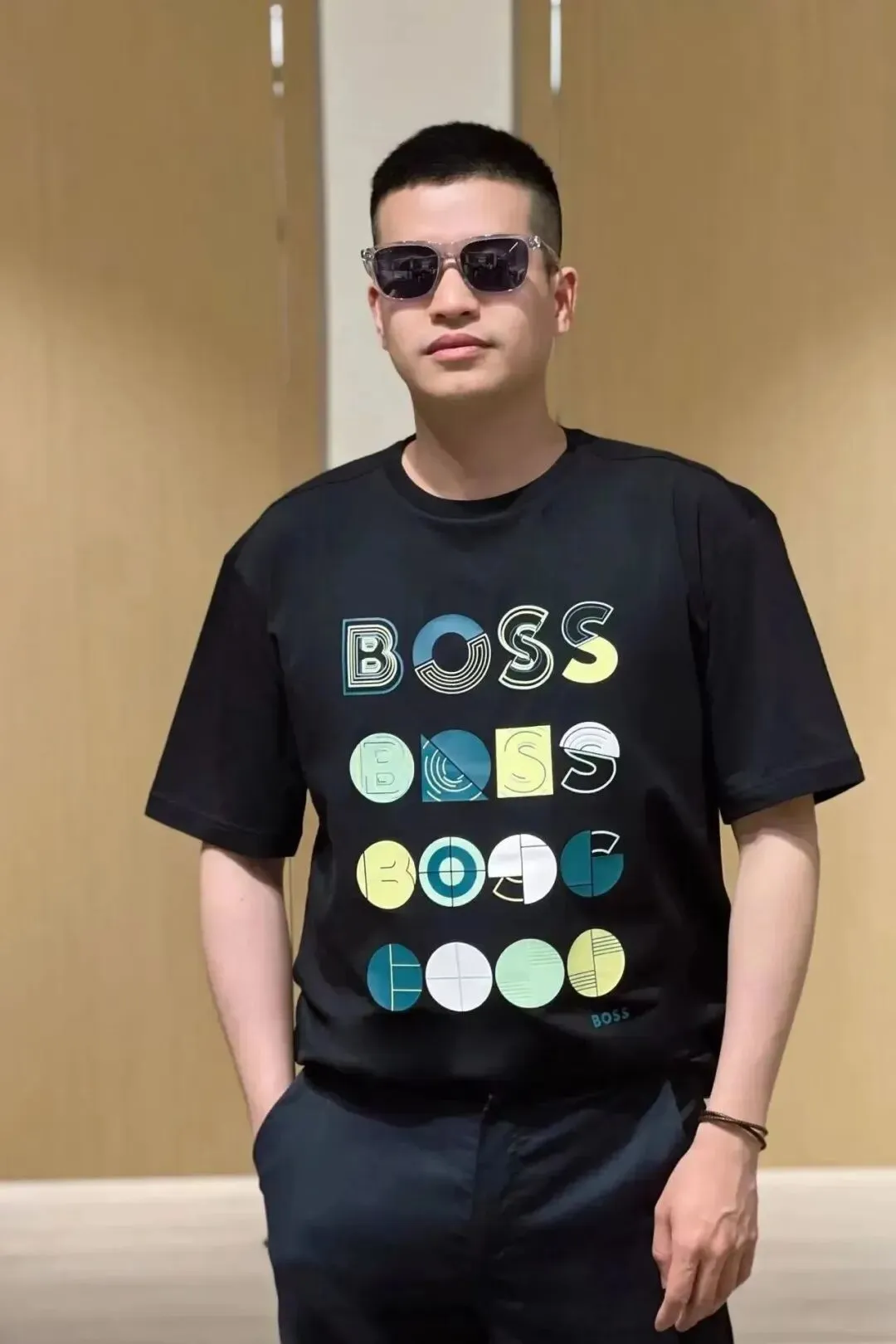 [右]男士黑色字母短袖T恤