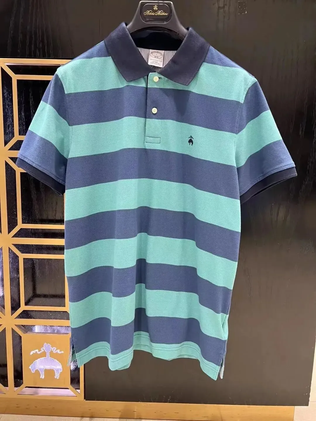 [左]男款蓝绿条纹POLO衫