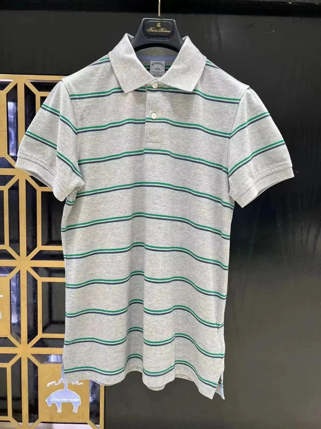 [右]男款灰色条纹POLO衫