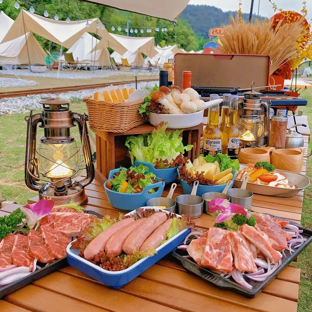 晚上可享受绥江落日野奢烧烤和精选露营美食