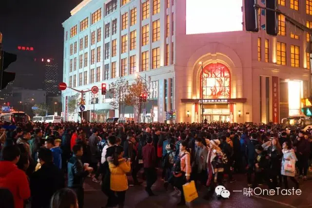 31号在南京路,绿灯时可以看到当晚南京路的人流非常恐怖。