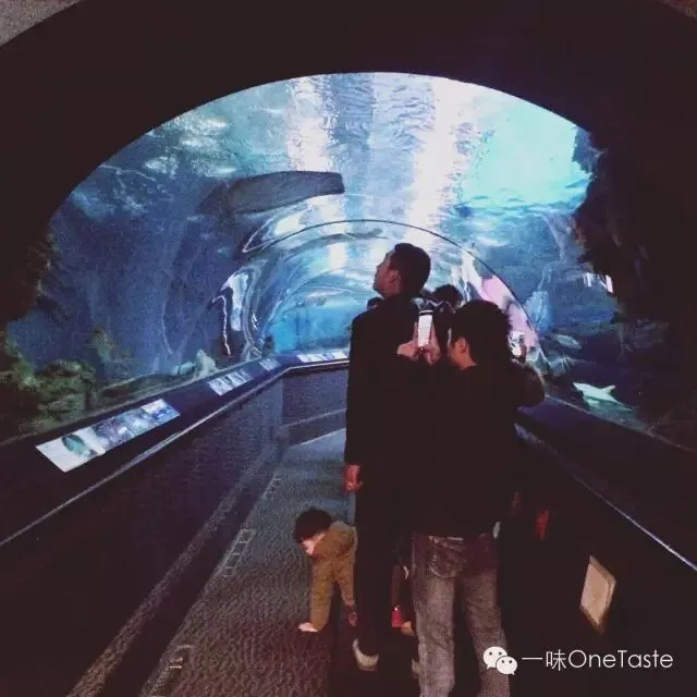 东方明珠隔壁的水族馆也排队很夸张。早上九点开门,所以赶在那之前去比较快等到~成人票160元,逛完一个小时左右。海底隧道不错哦。