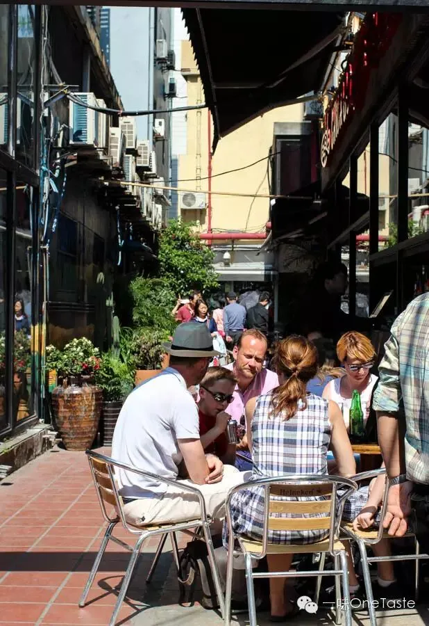 太仓路算是一条酒吧街,旁边就是新天地,来来往往都是外国人。人均消费高高的,250元起非常正常。我们光顾了一家叫宝来纳的酒吧,还发生了一件趣事:门口的侍应是位外国女生,他们就推着英语(勉强)过关的我上前,结果我开口就是一句:
