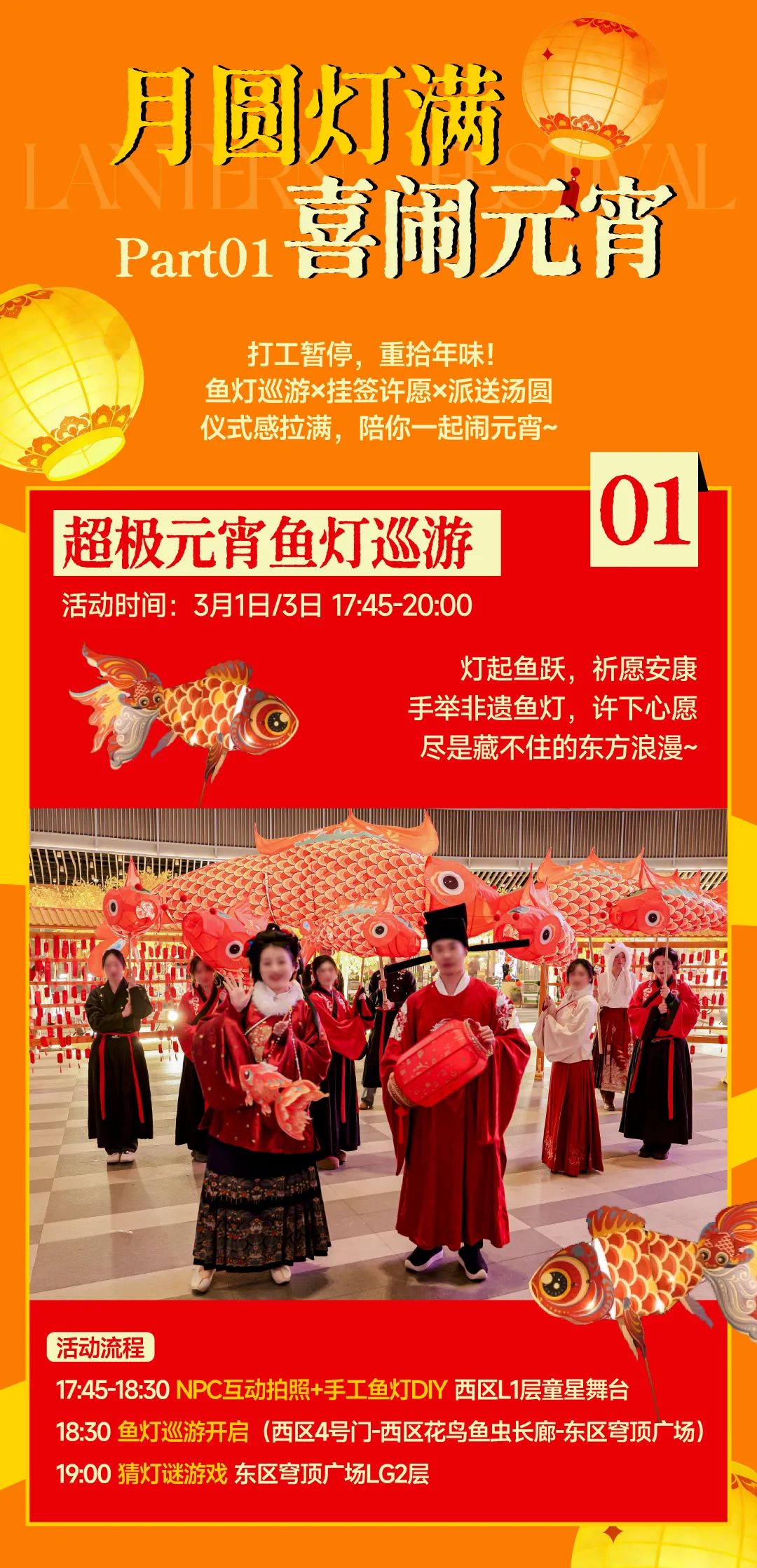 鱼灯巡游、猜灯谜闯关、元宵喜乐会……沙河万达元宵玩法全解锁!漫步流光溢彩的鱼灯队伍感受国风浪漫,开动脑筋挑战灯谜赢取惊喜好礼。